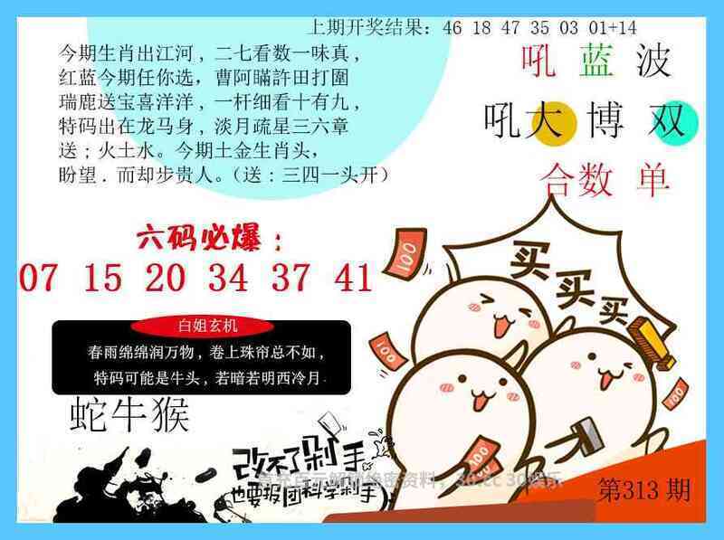314期:杀特三尾(259尾)开:羊23中