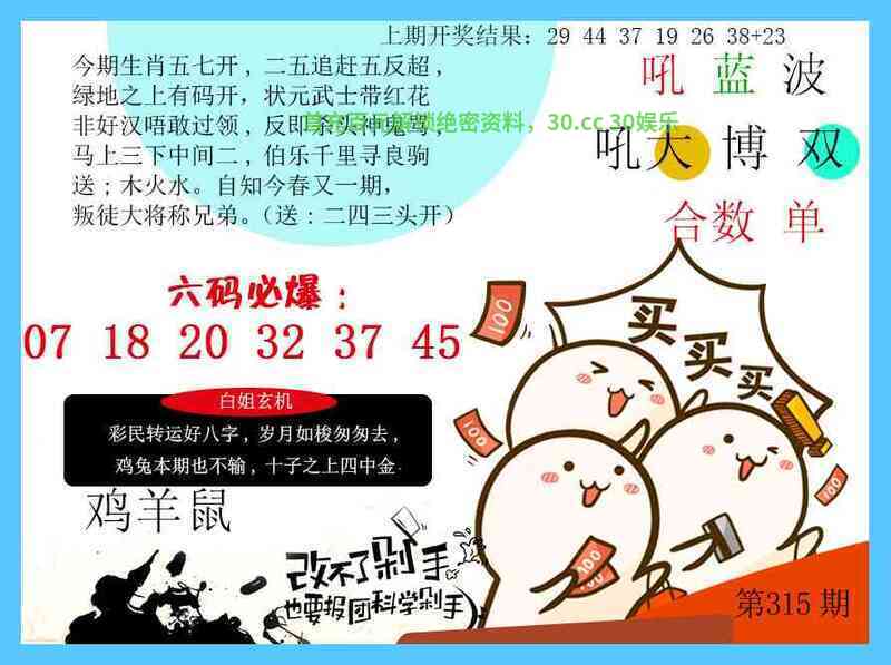 314期:【绝杀十码】开:羊23中