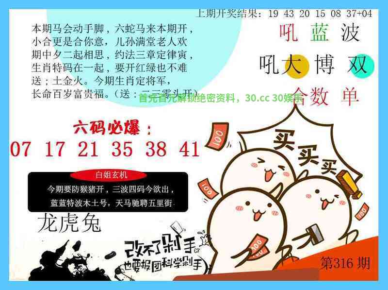 316期:杀特三尾(245尾)开:马24错